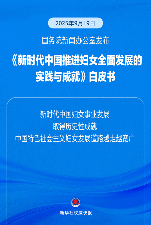 新华社北京9月19日电 国务院新闻办公室19日发布《新时代中国推进妇女全面发展的实践与成就》白皮书。全文如下: